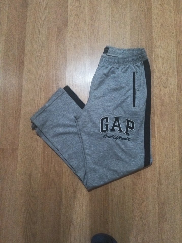 Yumuşak fleece kumaştan yapılmış, bol kesim gri erkek eşofman altı. Baskılı GAP logosu ve fermuarlı cepleri bulunur. Rahat ve sokak stili için uygun. ️boy 103 cm bel 44 cm S