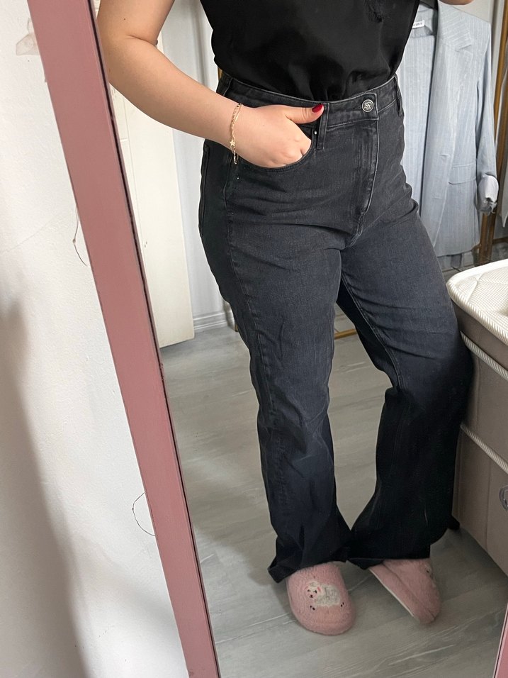 Gri Geniş Kesim Kadın Jean