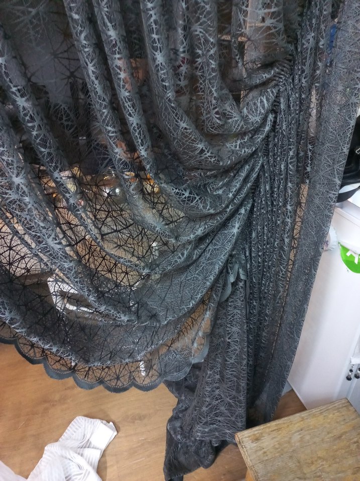 Gri renkli, gotik tarzda, ağ desenli fon perde, mekanlara karanlık ve şık bir hava katıyor. ️tek kanat