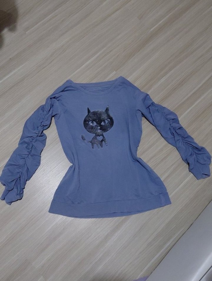 Gri renkte, uzun kollu ve fırfırlı gotik tarzda, önünde baskılı siyah kedi figürü bulunan üst. ORİJİNALDİR.1-2 kere kullanıldı bana buyuk geldıgı ıcın satıyorum mağazadan alınmış gıbı duruyo tertemiz sıfır değerinde.uzunkollu sweatshirt