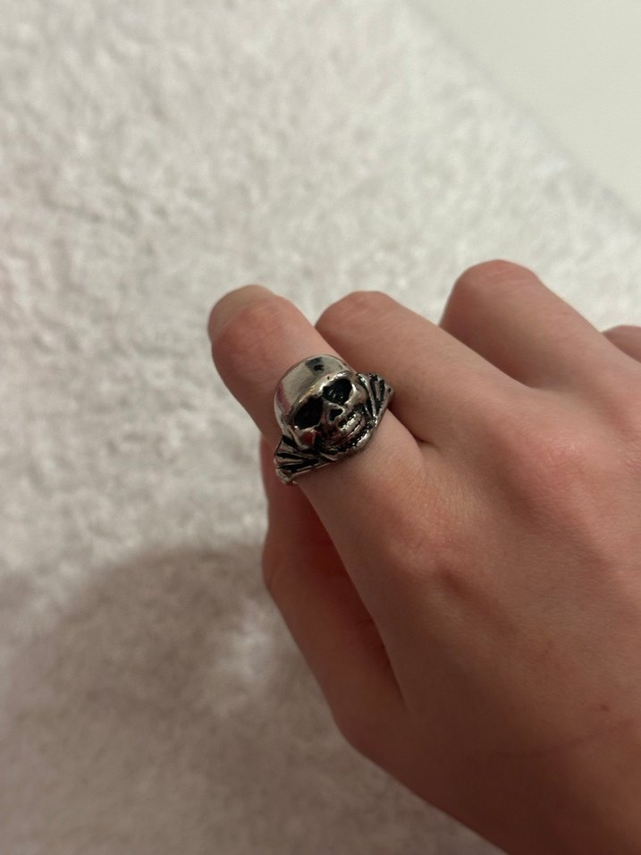 Gri renkte, kemerli kafatası tasarımlı gotik kadın yüzüğü, rock punk tarzına uygun ve günlük kullanım için ideal.