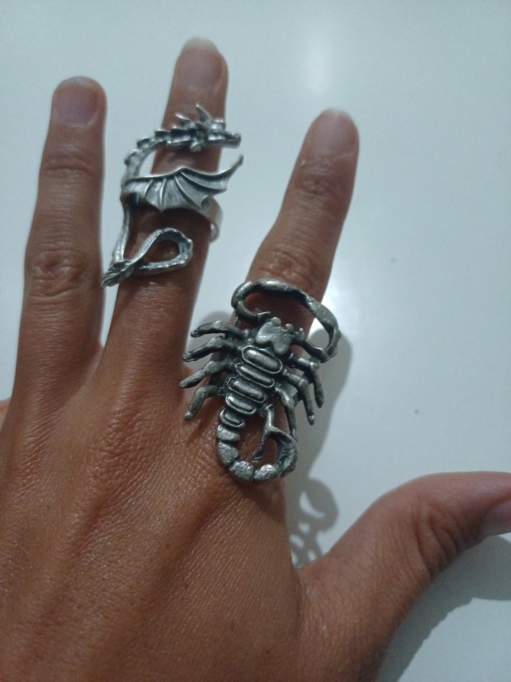 Ejderha ve akrep figürlü gri gotik yüzükleri, rock punk tarzı için uygun.
