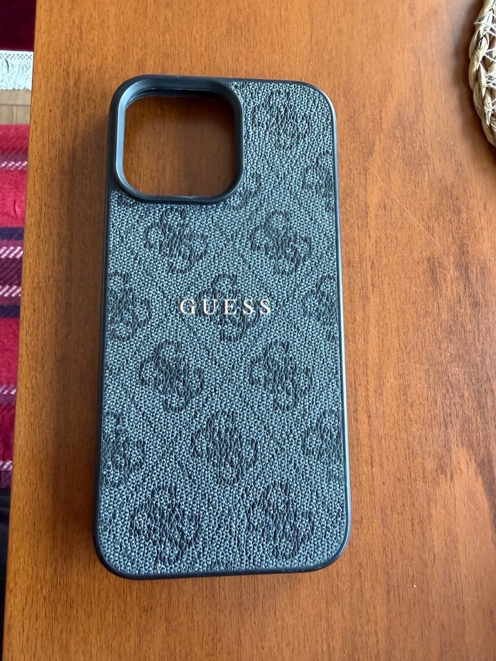 tasarıma sahip gri Guess telefon kılıfı, sokak stili ile uyumludur. Dokulu yüzey ve logo detayı bulunur.
