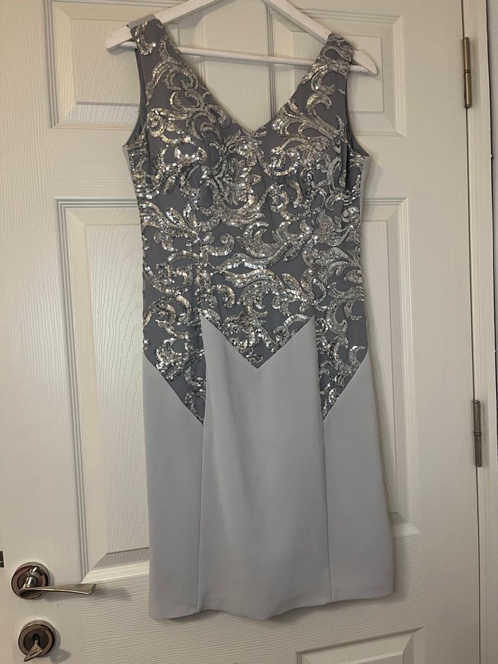 Gri Gümüş Payet İşlemeli, Zarif Kesim Abiye Elbise