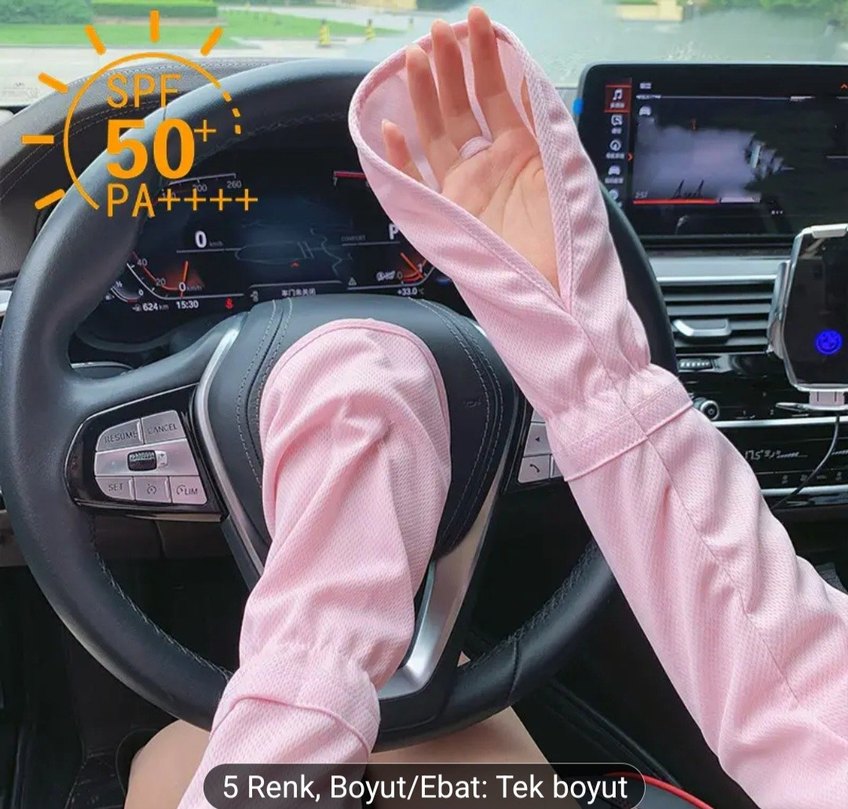 Yumuşak sentetik kumaştan yapılmış, düğmeli ayarlanabilir bel detaylı gri güneş eldiveni. Terletmez.