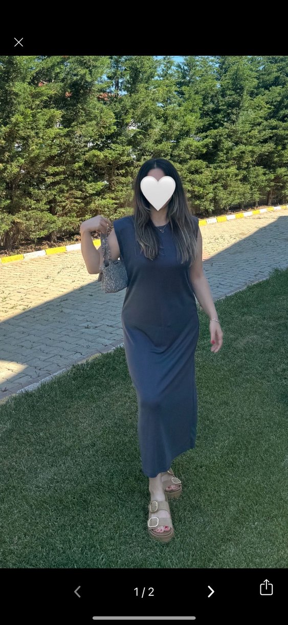 Gri renkli, kolsuz ve midi elbise, rahat ve bol kesimiyle outdoor kullanıma uygundur. Sade ve şık bir görünüm sunar.