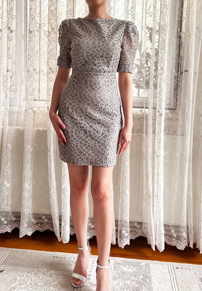 Gri güpür abiye elbise