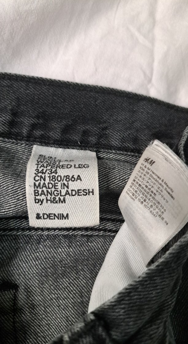 Gri renkli, H&M markalı erkek denim jean. Bol kesim, baskılı ve cırt cırt detaylı sokak tarzı jean.