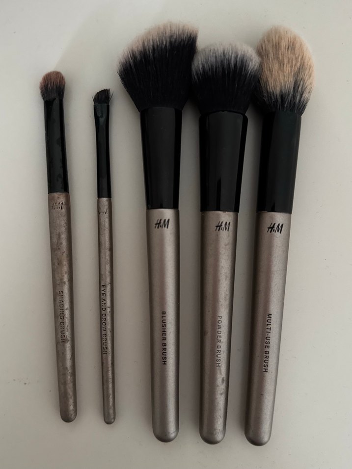 H&M markalı, farklı boyut ve şekillerde kahve saplı 5 adet makyaj fırçası seti. Çeşitli makyaj uygulamaları için uygundur. ️