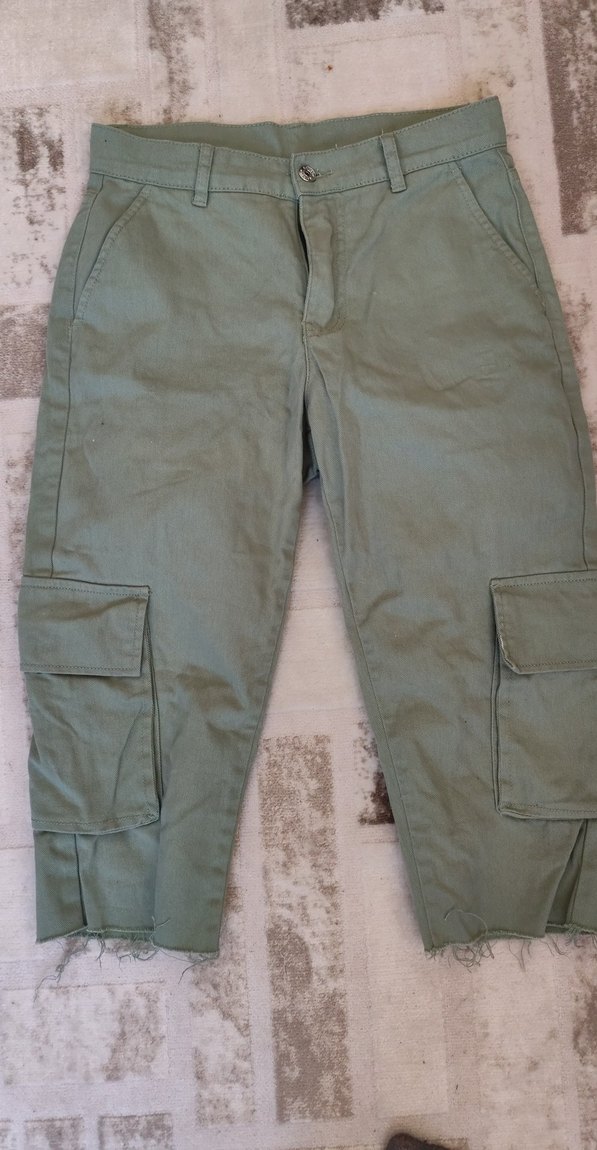Gri Haki Kadın Keten Rahat Kesim diz altı pantolon