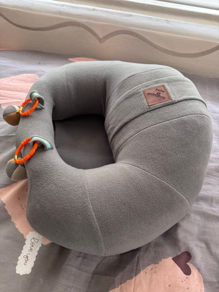 Yumuşak dokulu, sade tasarımlı gri hamile ve emzirme destek yastığı. Anneler için rahat destek sağlar, küçük halkalar pratiklik katar. ️