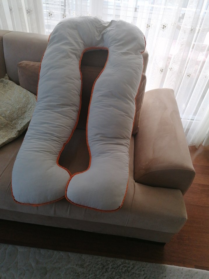 Turuncu kenarlıklı gri hamile ve emzirme yastığı, yumuşak ve desensiz kumaştan üretilmiştir. Rahatlık ve destek sağlar. ️