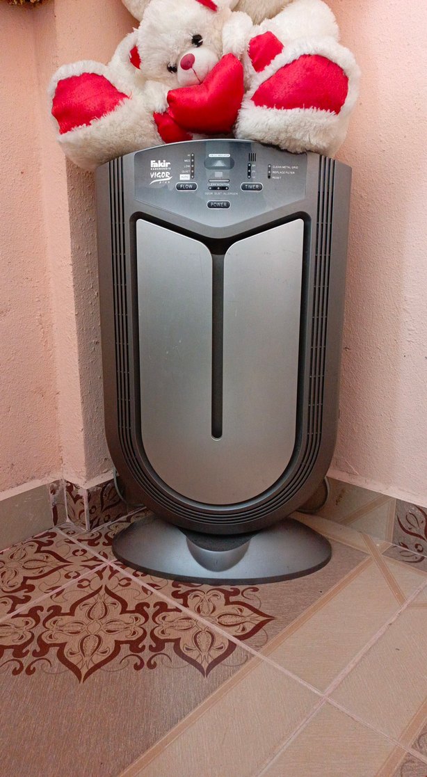 Gri renkte, kullanımı kolay düğmelere sahip hava temizleyici ve nemlendirici. Ortam havasını temiz ve nemli tutar. ️