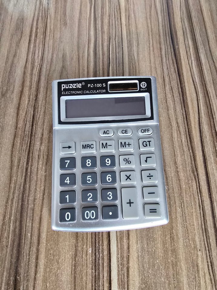 Gri renkte Puzzle PZ-100S hesap makinesi, 12 haneli ekran ve 5, CE, AC fonksiyon tuşlarına sahiptir. Çok az kullanıldı, sorunu vs yoktur. İhtiyaç fazlasıdır.#hesap makinesi#hesap#matematik#matematiksoru#hesaplama
