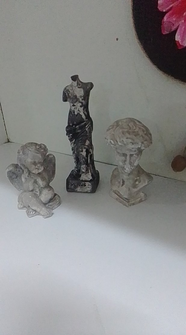Melek, klasik gövde ve büst şeklinde, vintage görünümlü gri heykelcik seti.