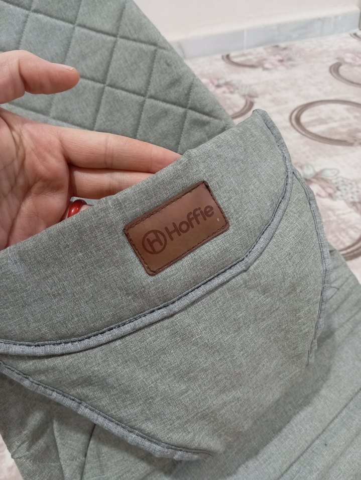 Yumuşak kumaştan gri Hoffie bebek sling, kapitone deseni ve ön cep ile pratik kullanım sağlar. Bebek taşıma için rahat bir seçenek. çok iyi durumda sadece iki ay kullanıldı yeni üç kademesi var sallanma özeliği var istediğiniz yere taşıyabilirsiniz
