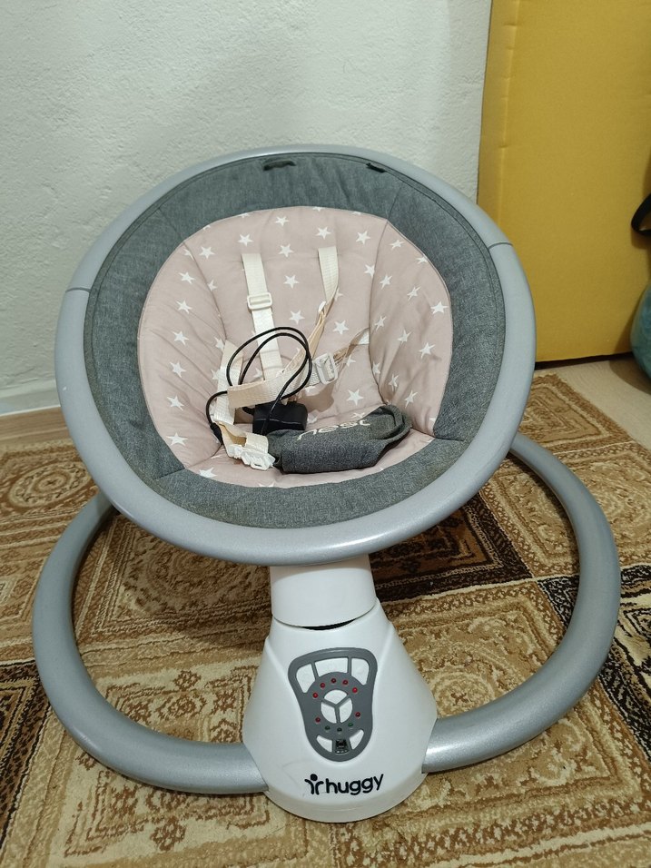 Huggy bebek salıncağı, yıldız desenli yumuşak oturma alanı ve emniyet kemeri ile gri sağlam çerçeveye sahiptir. Ayarlanabilir kontrol düğmeleri bulunur. hediye geldi bebeğim üzerinde yatmıyor. elektrikli sallanabilir ve müzik ayarı var sadece sesi biraz az çıkıyor. ben bir kaç defa kullanmayı denedim ama bebeğim yapmadığı için satıyorum.