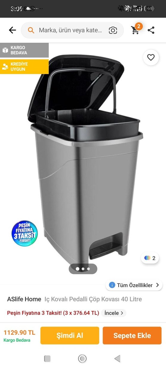 40 litrelik iç kovası olan gri pedallı çöp kovası. Eller serbest kullanım için pedal mekanizmalı. Tertemiz yer olmadığından satıyorum güncel fiyatı 1200 ️