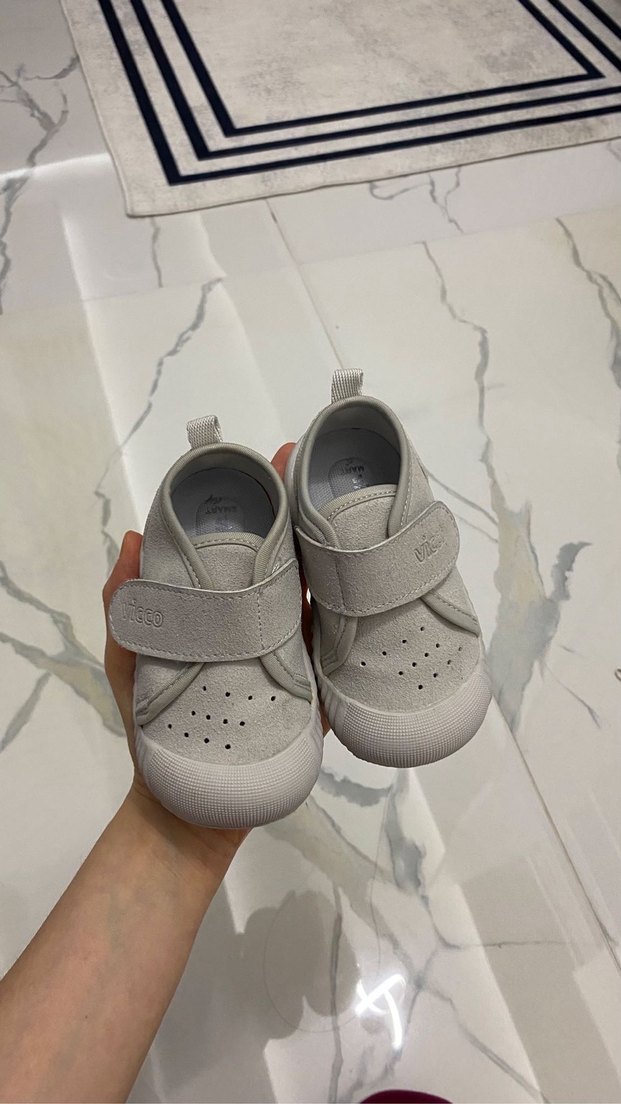 Erkek çocuklar için ilk adım ayakkabısı, kolay kapanan cırt cırtlı bant ve dayanıklı kauçuk taban içerir. Düz gri renkte, sokak stili ve desensizdir. Vicco 22 numara az kullanılmıştır, ürün temiz kusuru yok göründüğü gibidir rahat ortopedik