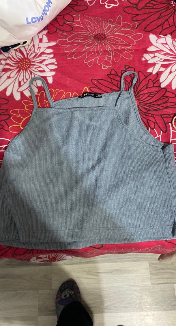 Gri renk, ince askılı, kısa kesim kadın atlet. Rahat sentetik kumaştan, sokak stiline uygun ve tokalı detaylıdır. Günlük kullanım için uygundur.