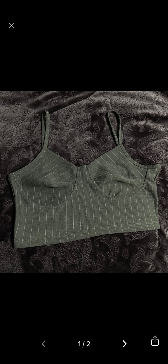 Gri renkte, ince çizgili midi uzunluğunda, ince askılı, desen içermeyen rahat bir bralet. Sokak stiline uygun sade tasarım.