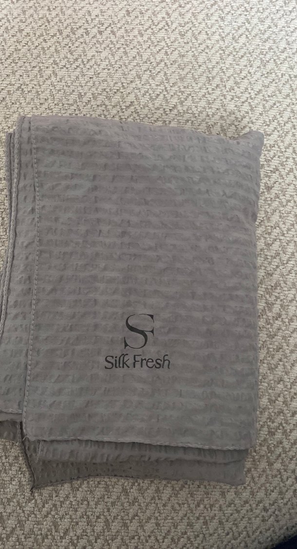 Gri renkli, ipek görünümlü bu kadın şalı, dökümlü tasarıma sahip sade ve bohem tarzda, üzeri SilkFresh logosuyla işlenmiştir.