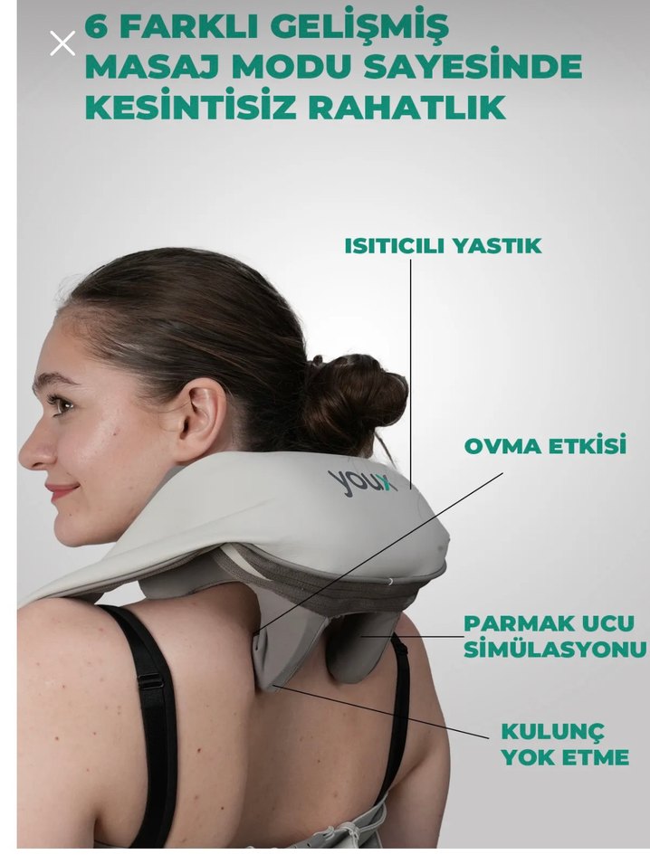 Gri masaj yastığı, parmak ucu simülasyonu ve ovma etkisi ile 6 gelişmiş masaj modu sunar. Kesintisiz rahatlık ve ısıtıcı yastık özelliği sağlar.