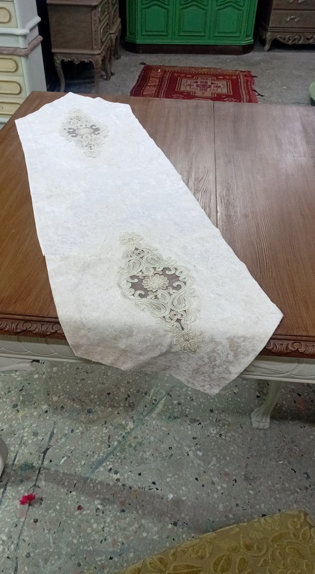 Gri İşlemeli Beyaz Masa Örtüsü 137x37