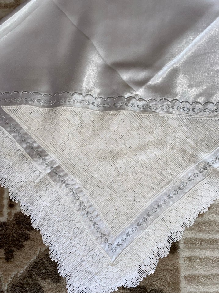 Gri İşlemeli Beyaz Masa Örtüsü