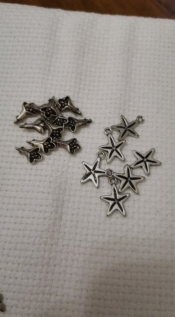 Gri işlemeli ve boncuklu, yıldız ve anahtar tasarımlı kadın charm. Günlük kullanıma uygun rock punk ve grunge tarzı aksesuar.
