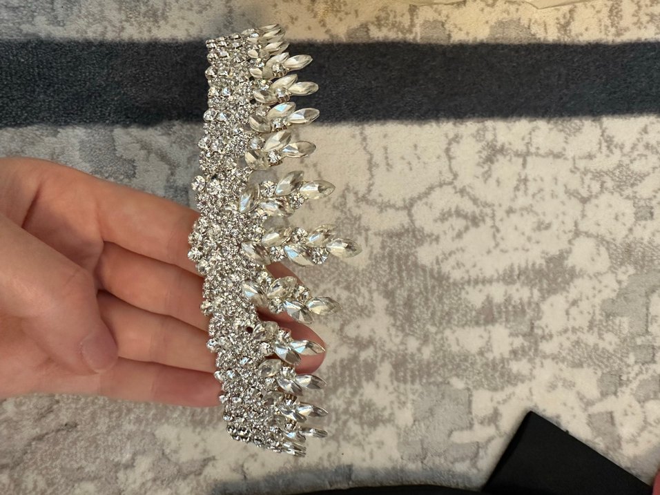 Bohem tarzda, gri tonlarda işleme ve payet detaylı taç, düğün ve modaya uygun görünümler için ideal. ✨