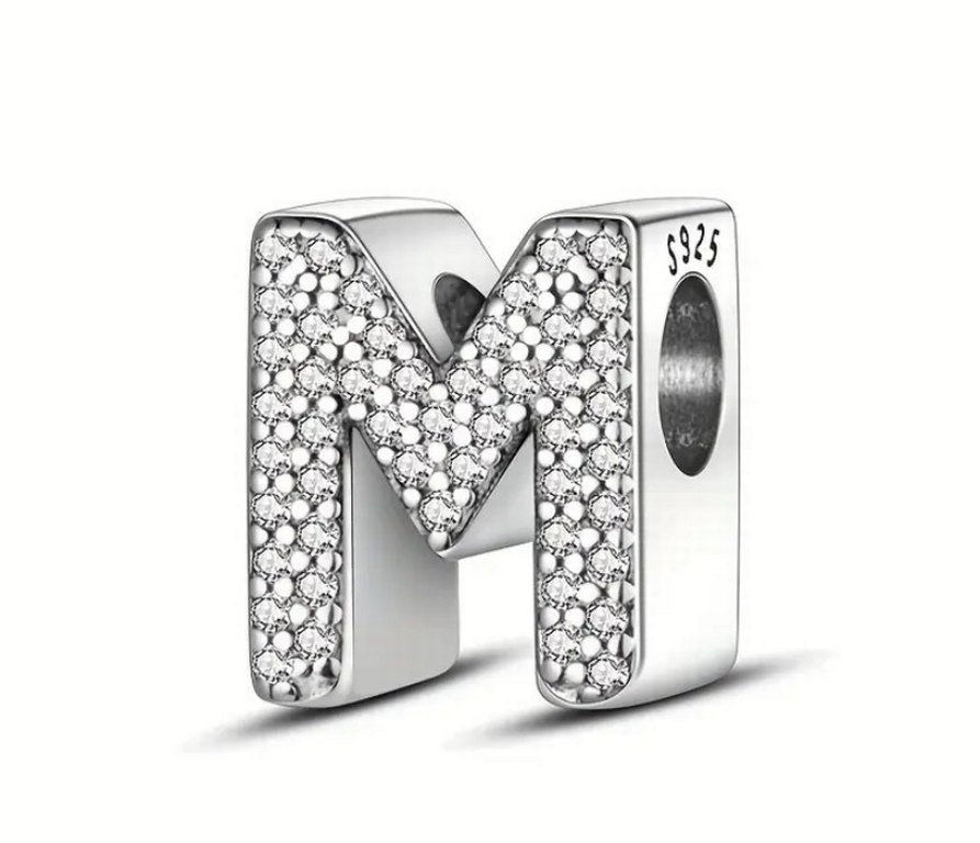 Gri İşlemeli Payetli M Harfi Charm