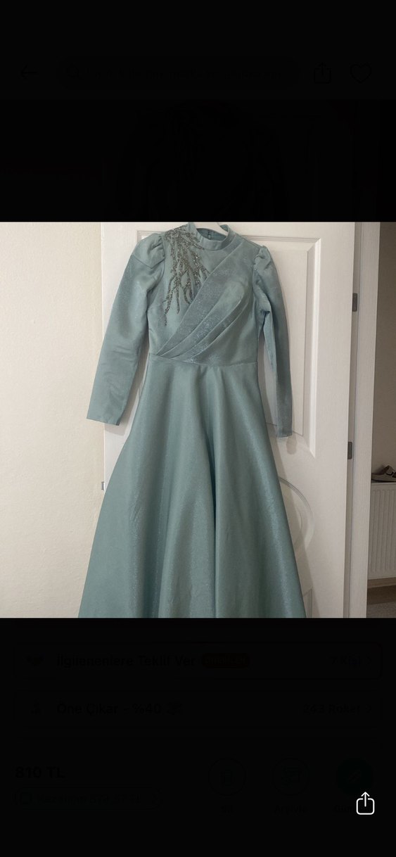 Su yeşili tonlarında 36 beden abiye elbise 1 kere giyildi. Şalı yanında hediyedir 55 kiloda 153 boyda 10 cm topuklu ile giyildi. Gönül rahatlığı ile düğün nişan gibi özel günlerde şalı hazır alıp kullana bilirsiniz