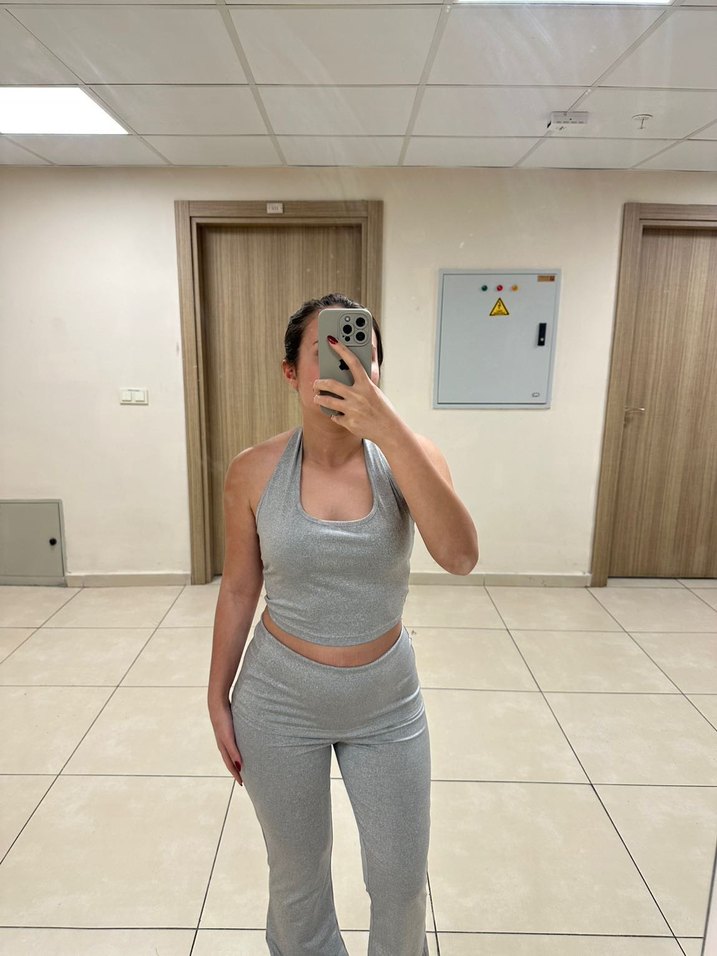 Gri renkte, yüksek yakalı ve kolsuz, vücuda oturan midi uzunluğunda aktif giyim takımıdır. Spor ve günlük kullanıma uygundur. ️♀️