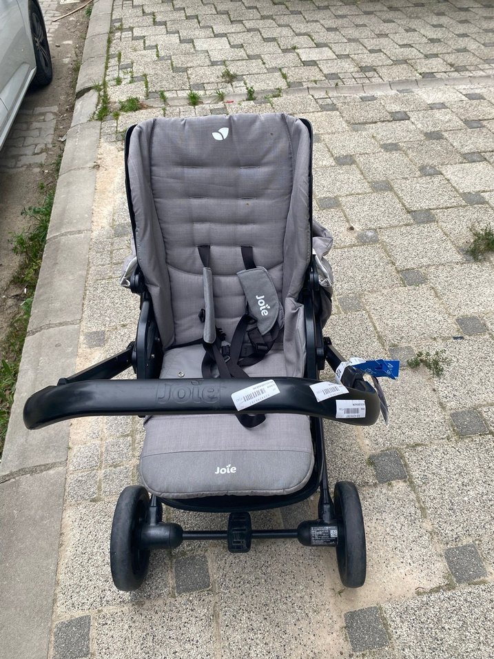 Gri Joie bebek arabası, yastıklı oturma yeri ve güvenlik kemeri ile konforlu ve güvenli kullanım sunar. Dayanıklı yapısı ve ön tekerlekleri sayesinde kolay yönlendirilir.