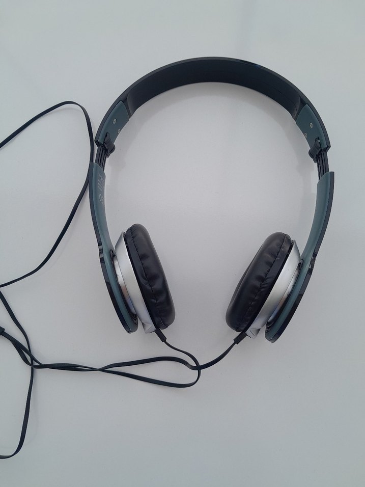 Kablolu, yumuşak pedli ve ayarlanabilir bantlı gri kulaklık, konforlu dinleme sağlar.Herhangi bir sorunu yoktur ve mikado markadır.