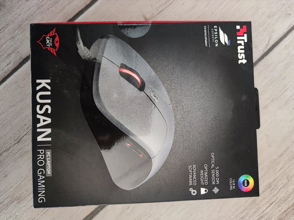Gri kablolu mouse, 5000 DPI optik sensör, optimize edilmiş ağırlık ve gelişmiş yazılım sunar. ️