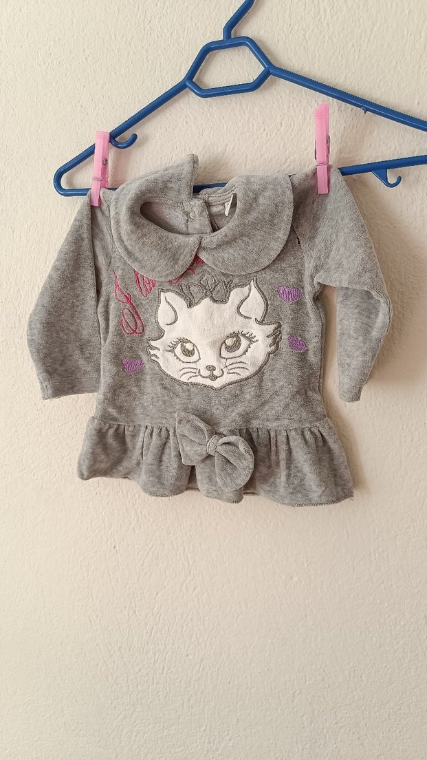 Gri kadife Nakışlı Kedi Desenli Kıyafet
