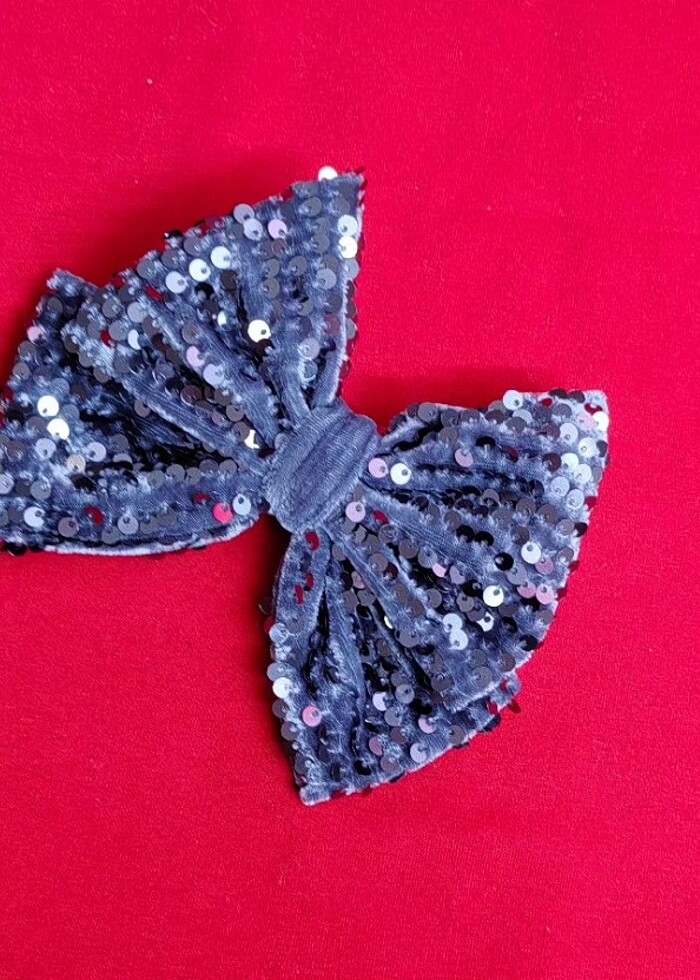 Gri kadife pullu fiyonk toka  - Görsel 1