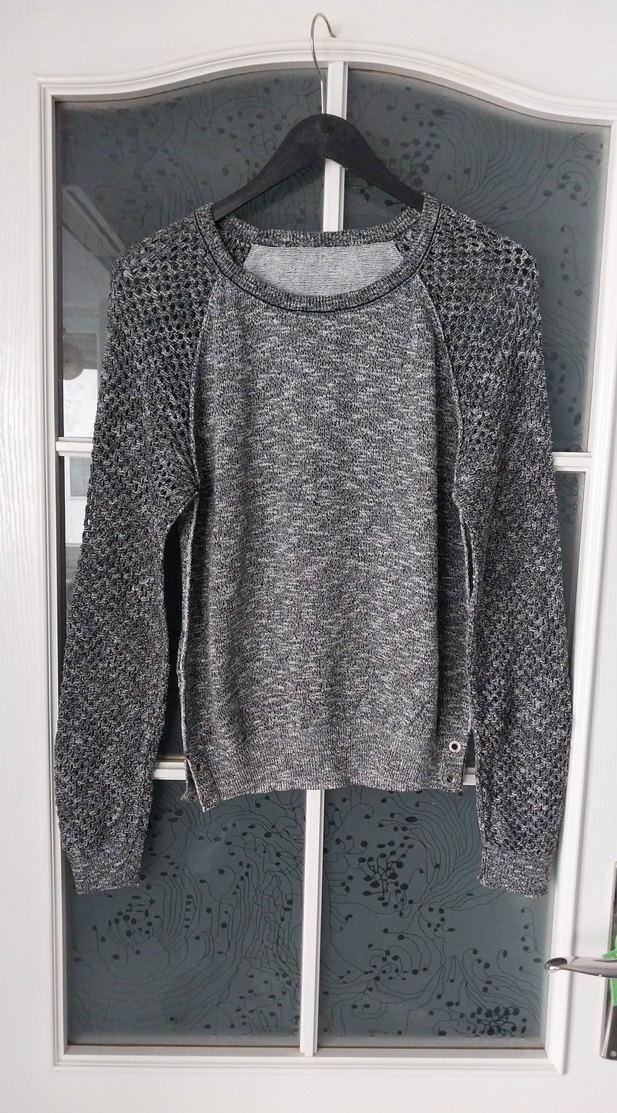 Gri renkte, 38 uzun kollu, yuvarlak yakalı, pamuklu kadın triko kazak. Normal midi boyda, desensiz ve rahat bir stil sunar. Günlük kullanıma uygundur. ürün hiç kulanmadim.boy 60cm koltuklar arası 53cm.
