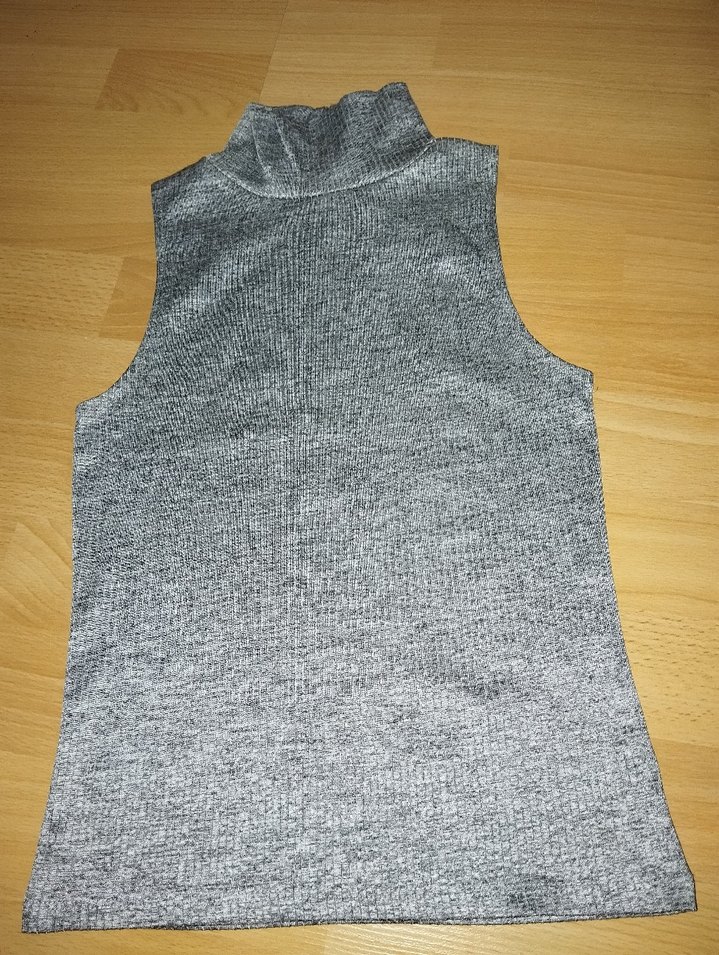 Bu gri kadın süveter, balıkçı yaka ve kolsuz tasarıma sahiptir. Yumuşak sentetik kumaştan günlük ve rahat sokak stili için uygundur.