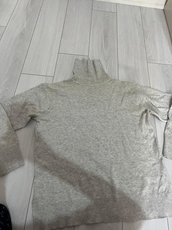 Gri renkli, balıkçı yaka ve uzun kollu, yumuşak keten kumaştan yapılmış, vücuda oturan kadın triko. Normal midi boyda, sade ve zahmetsiz şıklık sunar.