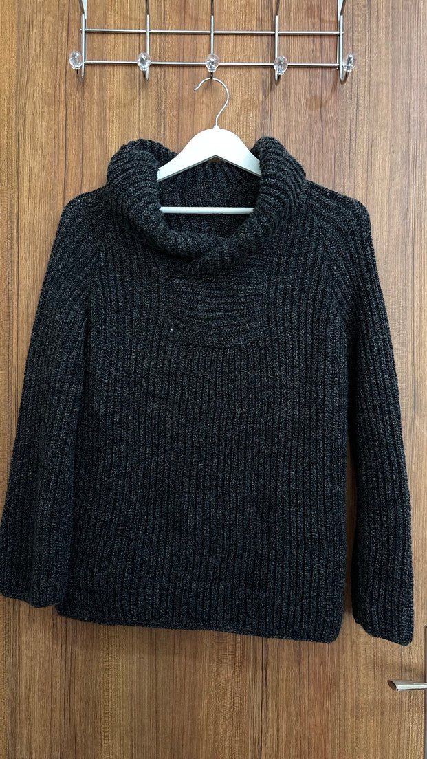 Gri renkli, el örgüsü, bol kesim ve uzun kollu balıkçı yaka rahat bir kazak, günlük kullanım için uygundur. Kadın ve erkeğe uyumlu