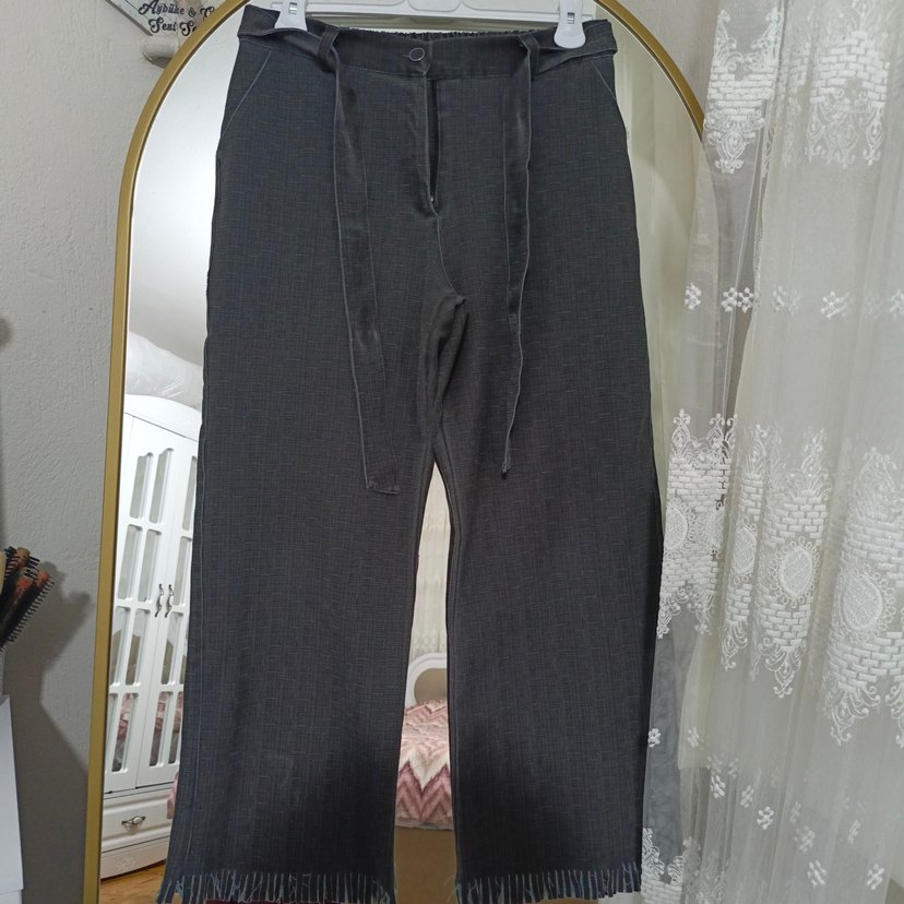 Gri Kadın Belden Bağlamalı Kot Pantolon