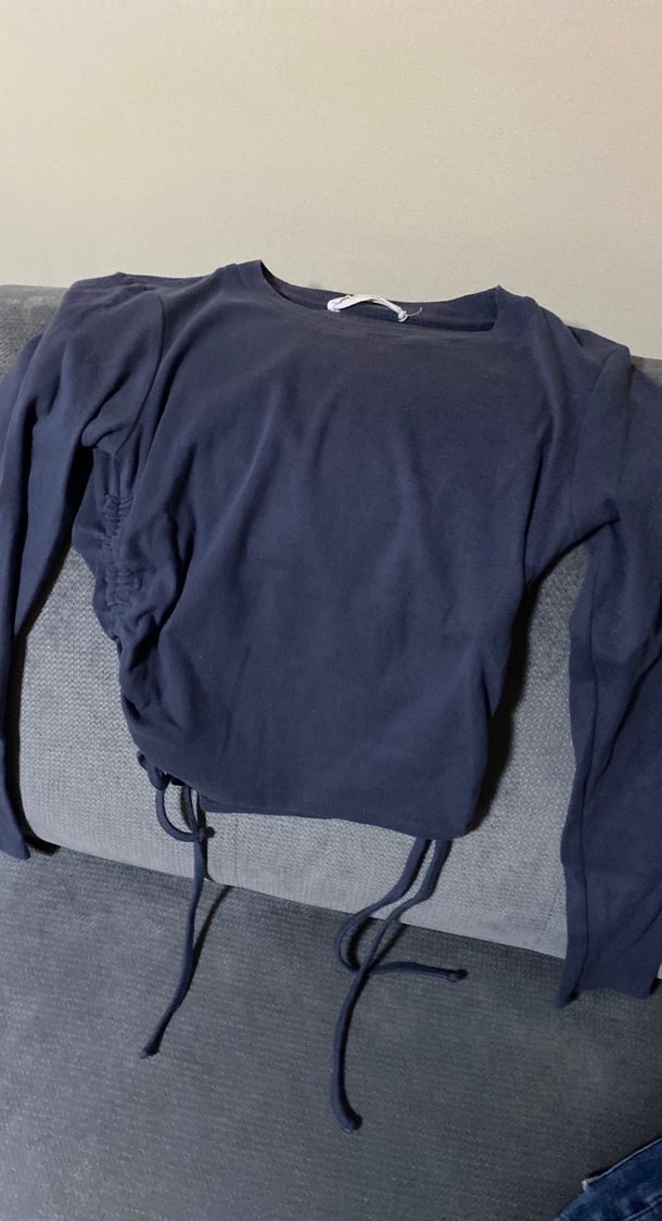 Gri, bisiklet yaka, uzun kollu ve fit kesim kadın sweatshirtü. Yumuşak keten kumaştan, normal boyda, bağcıklı detaylarla rahat ve şık görünüme sahip. Günlük kullanım için ideal.