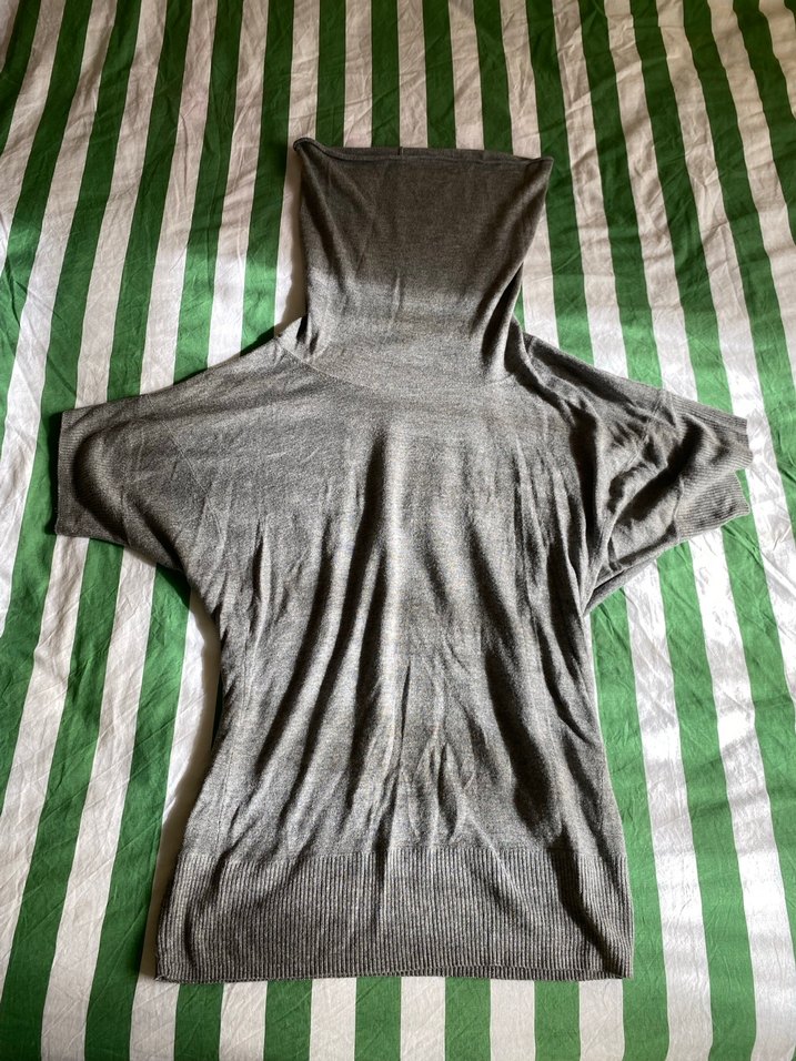 Gri, boğazlı, kısa kollu ve dökümlü kadın trikosudur. Sentetik, yumuşak kumaştan, normal ve midi boyda, sokak modasına uygundur.