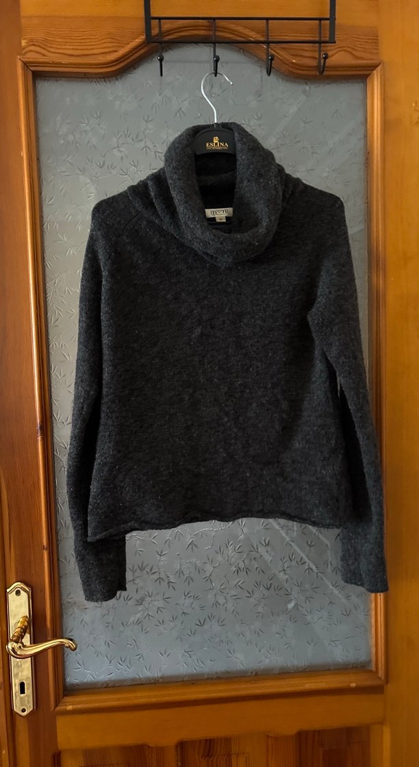 Gri renkte, yumuşak yün örgüden üretilmiş, boğazlı ve uzun kollu, rahat kesim kadın kazak. Günlük kullanıma uygundur.