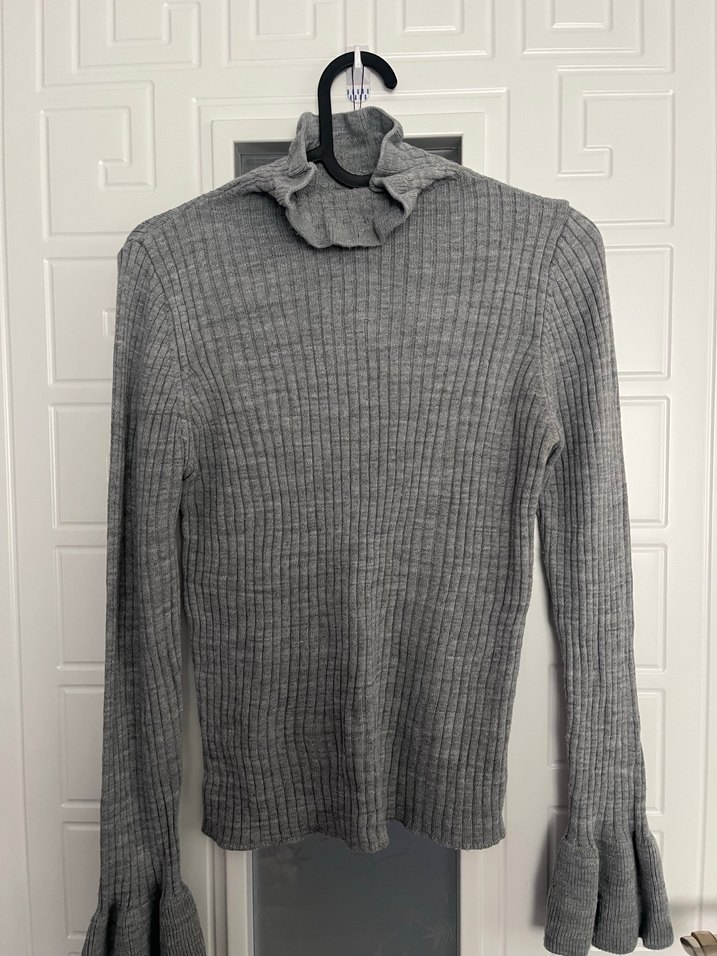 Gri Kadın Boğazlı Triko Kazak