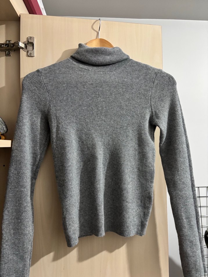 Bu gri kadın boğazlı triko kazak, yün kumaştan örülmüş, fitted kesim ve uzun kolludur. Günlük kullanıma uygun sade ve rahat bir modeldir.