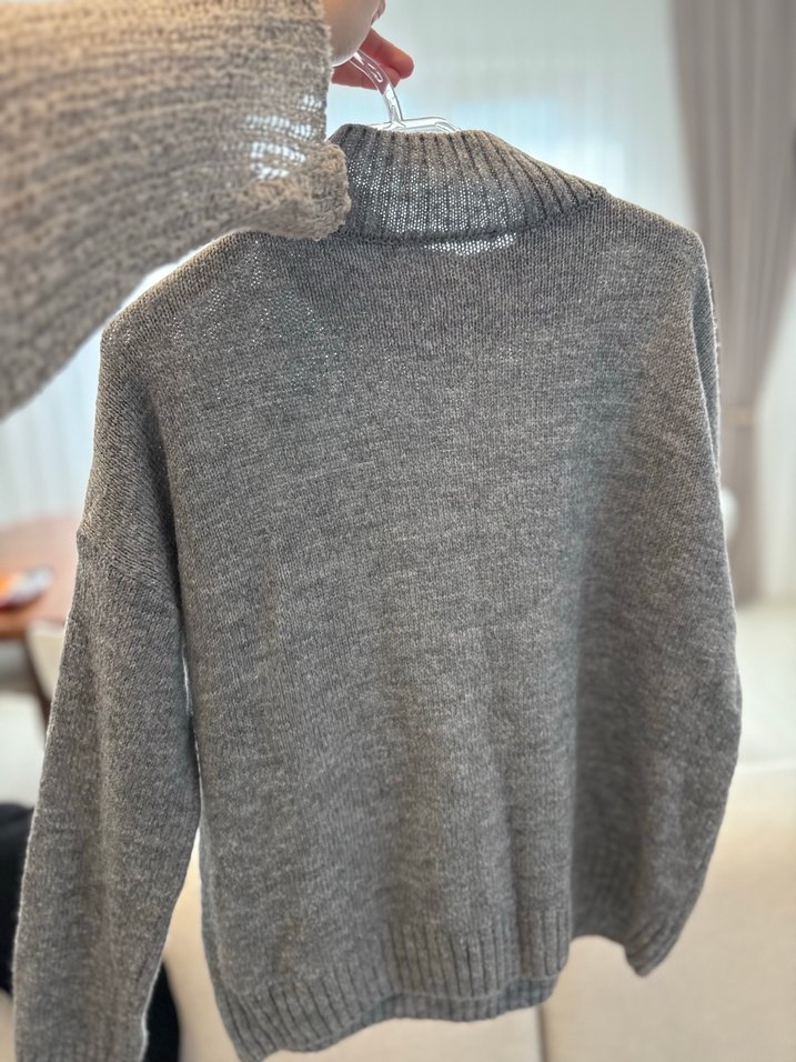 Gri renkte, boğazlı, uzun kollu ve örme dokulu kadın kazak. Salaş kesimi ve normal midi boyuyla günlük kullanıma uygundur. Desensiz sade tasarım sunar.
